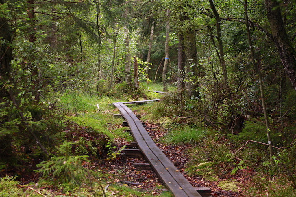 Pokrzepiony kawą i ciastkiem ruszyłem na szlak obszaru rekreacyjnego Klåveröd. Prowadził on najpierw leśną drogą, po czym kładką po torfowisku, potem znowu lasem. Było cicho, bardzo cicho aż niepokojąco cicho. Czasem tylko można było usłyszeć jakiegoś ptaka lub pękającą gałązkę. Czyżby to trolle?